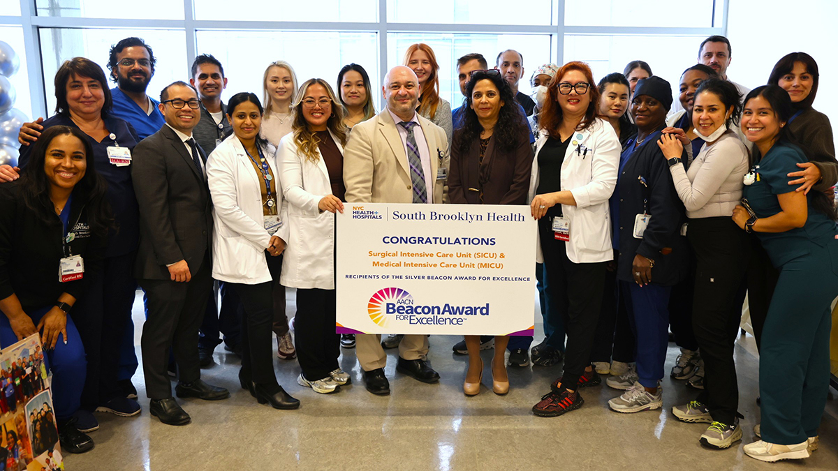 NYC Health + Hospitals/South Brooklyn Health today announced that their Medical Intensive Care Unit (MICU) and Surgical Intensive Care Unit (SICU) both recently received a Silver Beacon Award for Excellence from the American Association of Critical Care Nurses (AACN). The Beacon Award is a prestigious national recognition awarded to individual hospital units that demonstrate exceptional performance in quality care, patient outcomes, work environment, and nursing workforce standards. A Silver Beacon Award for Excellence reflects exceptional patient care and a healthy work environment. It recognizes unit caregivers who successfully improve patient outcomes and align clinical practices with the AACN’s Healthy Work Environment Standards. Units that receive Beacon recognition are recognized as role models in delivering safe, patient-centered care and fostering a healthy work environment that supports collaboration, staff engagement, and continuous improvement.